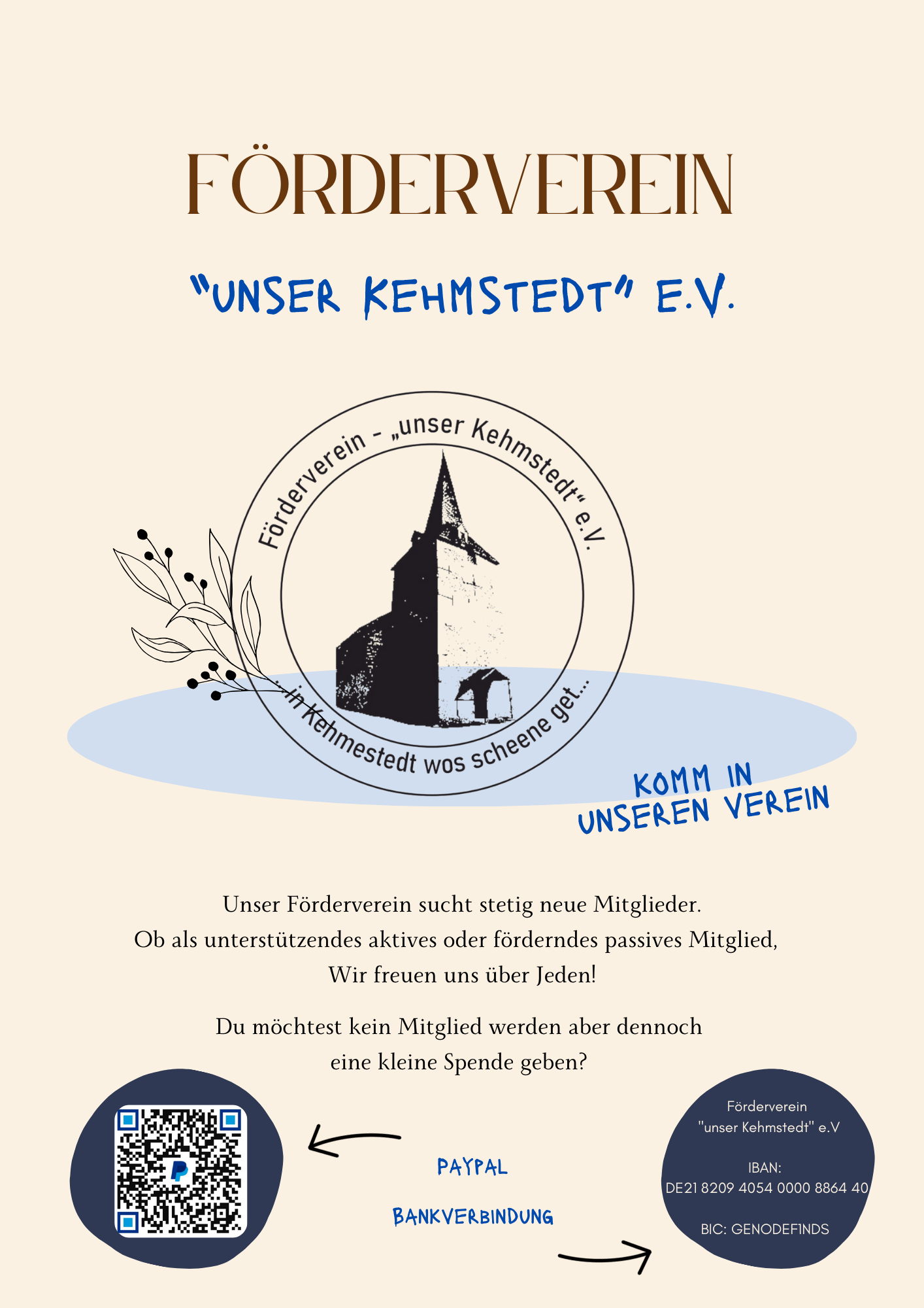 im September 2021 gründeten wir den Förderverein "unser Kehmstedt" e.V. Wir, dass sind Alexandra Riechel (Vorsitzende), Susan Becker (2. Vorsitzende), Yvonne Niederle (Kassenwartin) und Oliver Riechel (Schriftführer).